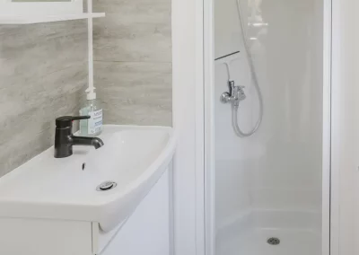 Eine vollausgestattete Küche sowie eine eigene Dusche im Badezimmer garantieren euch viel Komfort und Privatsphäre.